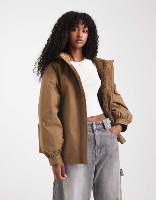 ASOS DESIGN – Oliwkowy płaszcz przeciwdeszczowy oversize z polarową podszewką