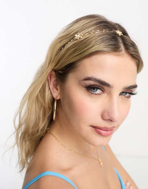 ASOS DESIGN – Opaska na głowę w odcieniu złota z kwiatami i perłami
