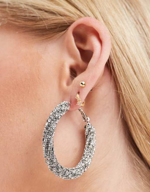 ASOS DESIGN – Owalne skręcone kolczyki-koła zdobione kryształkami