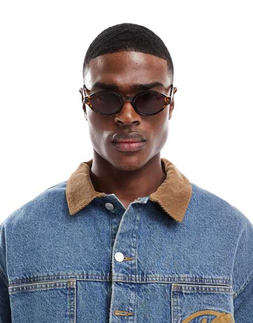 ASOS DESIGN – Owalne szylkretowe okulary przeciwsłoneczne w stylu preppy z bordowymi szkłami