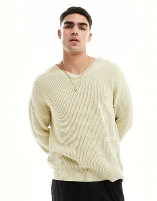 ASOS DESIGN – Owsiany prążkowany sweter oversize z dekoltem w szpic z dzianiny o splocie angielskim