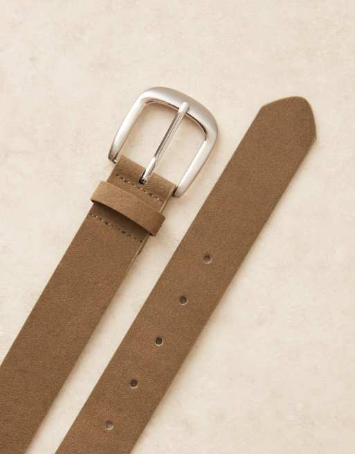 ASOS DESIGN – Pasek z naturalnego zamszu w kolorze khaki
