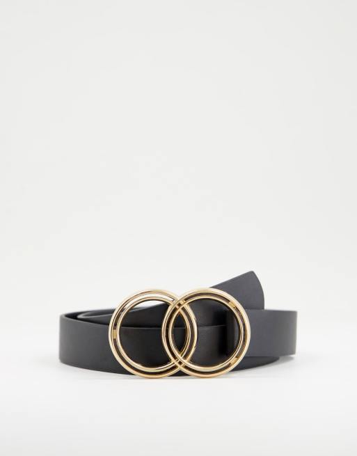 ASOS DESIGN – Pasek z podwójną okrągłą klamrą w kolorze złotym