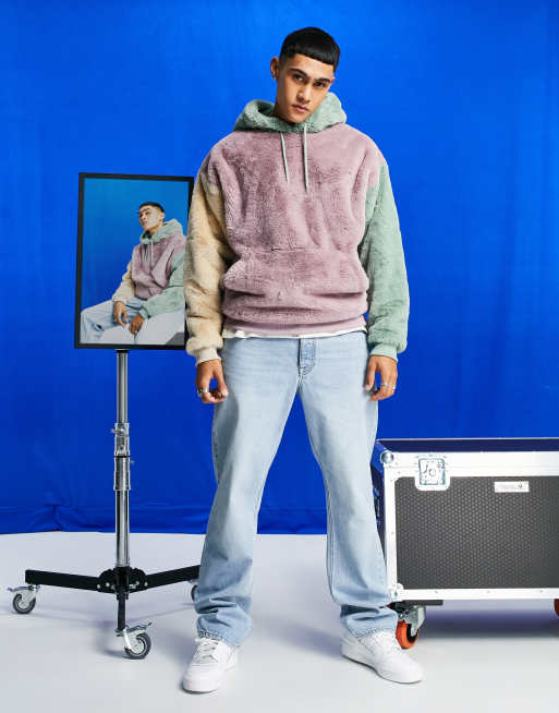 ASOS DESIGN – Pastelowa bluza z kapturem ze sztucznego futra w bloki kolorów