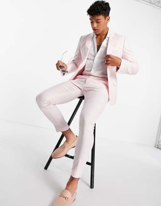 ASOS DESIGN – Pasteloworóżowe spodnie garniturowe o bardzo obcisłym kroju z mieszanki lnu