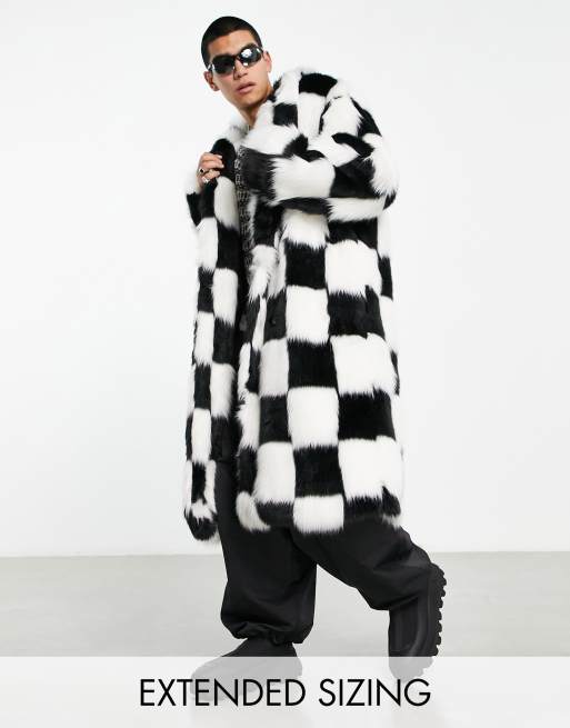 ASOS DESIGN – Płaszcz o wydłużonym fasonie ze sztucznego futra w kratę