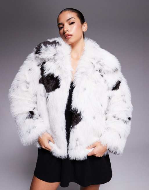 ASOS DESIGN – Płaszcz z kołnierzem ze sztucznego futra w kremowo-czarne krowie łaty
