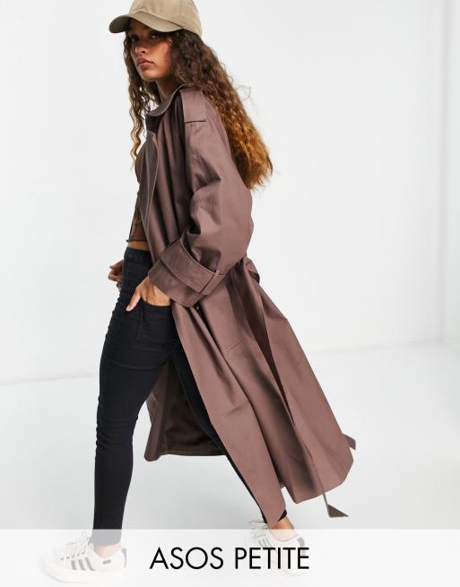 ASOS DESIGN Petite – Ciemnobrązowy prochowiec oversize