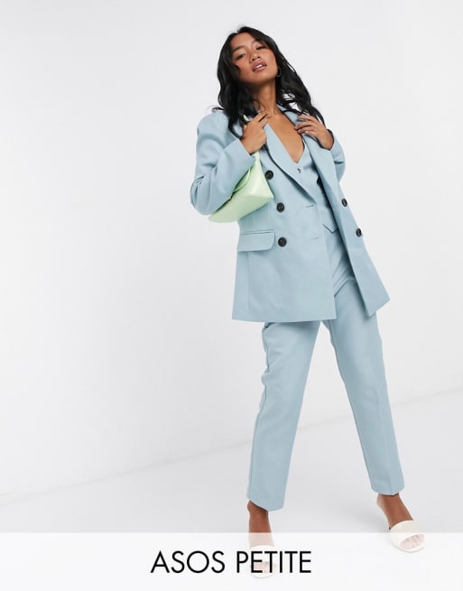 ASOS DESIGN Petite – Niebieski 3-częściowy garnitur o kroju dad