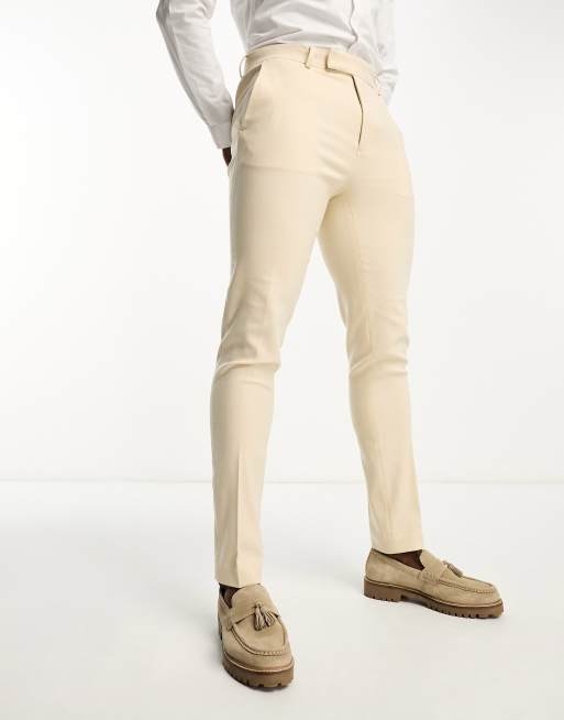 ASOS DESIGN – Piaskowe obcisłe spodnie garniturowe typu oxford