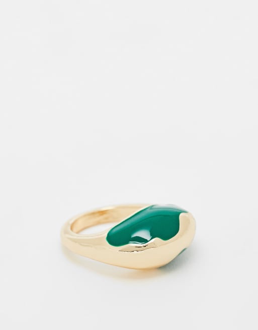 ASOS DESIGN – Pierścionek w złotym kolorze z zielonym abstrakcyjnym emaliowanym oczkiem