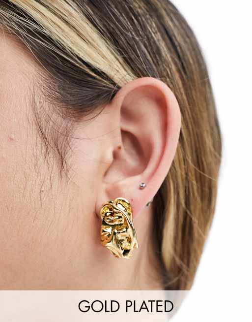 ASOS DESIGN – Platerowane 14-karatowym złotem fakturowane kolczyki wkrętki z efektem stopienia