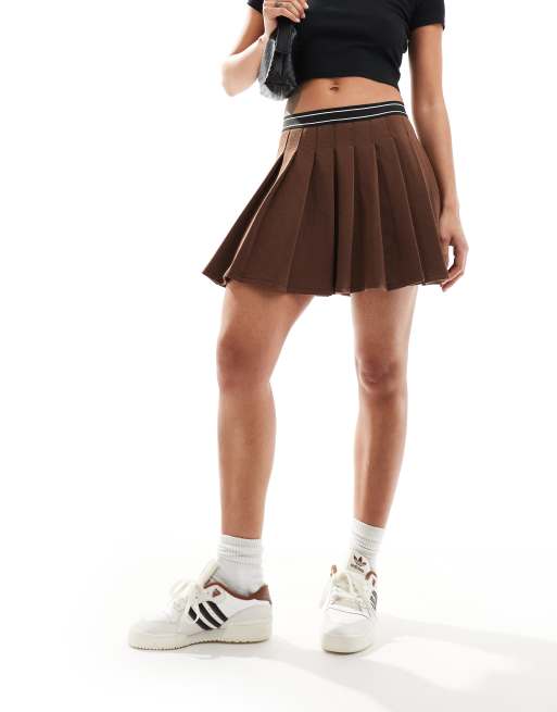 ASOS DESIGN – Plisowana brązowa spódnica mini z diagonalu z elastyczną talią