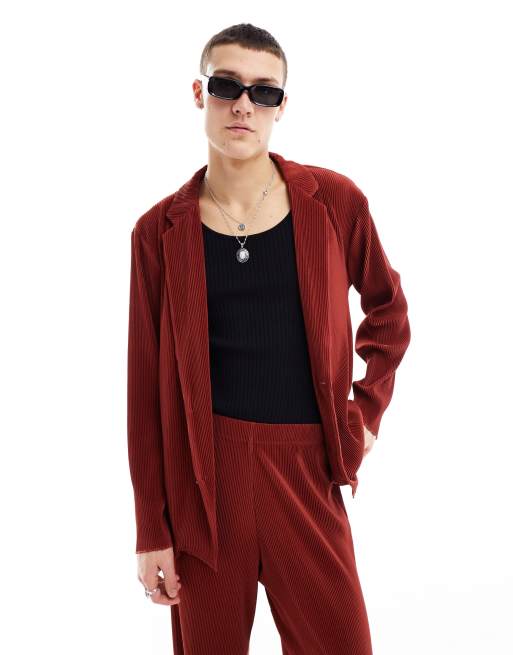 ASOS DESIGN – Plisowana czerwona marynarka garniturowa oversize o bardzo luźnym kroju
