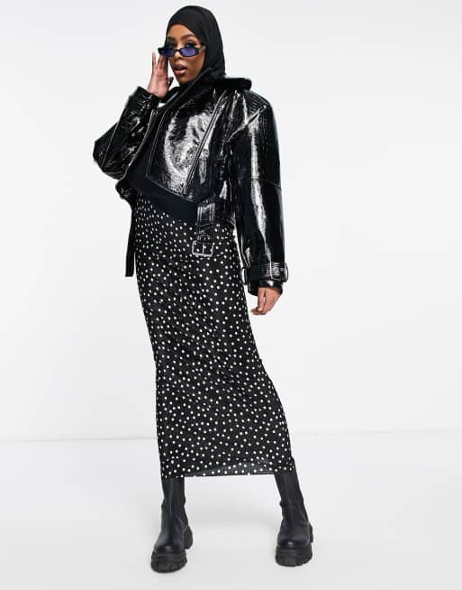 ASOS DESIGN – Plisowana, monochromatyczna spódnica kolumnowa maxi w kropki