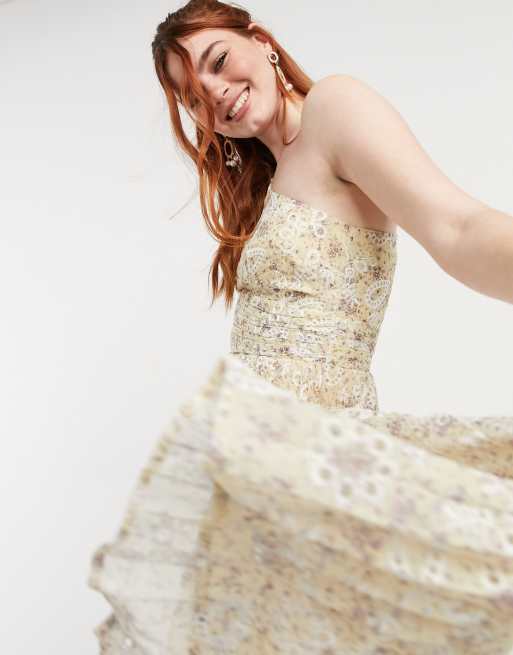 ASOS DESIGN – Plisowana sukienka midi na jedno ramię z kwiatowym haftem angielskim