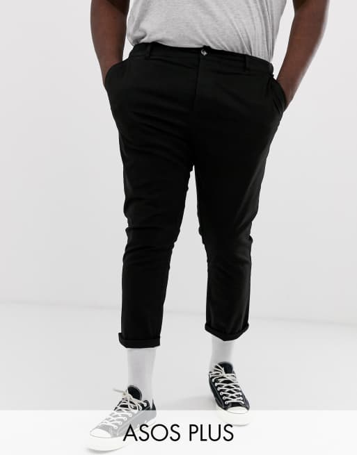 ASOS DESIGN - Plus - Czarne skrócone spodnie chinosy o dopasowanym kroju