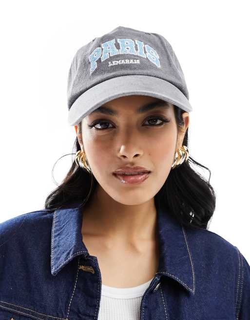 ASOS DESIGN – Płócienna czapka z daszkiem i efektem sprania z napisem „Paris”