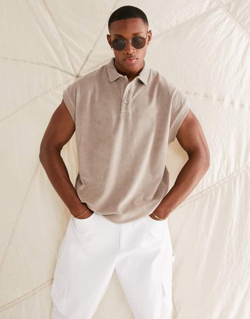 ASOS DESIGN – Podkoszulek oversize z kołnierzykiem polo z beżowej tkaniny frotté