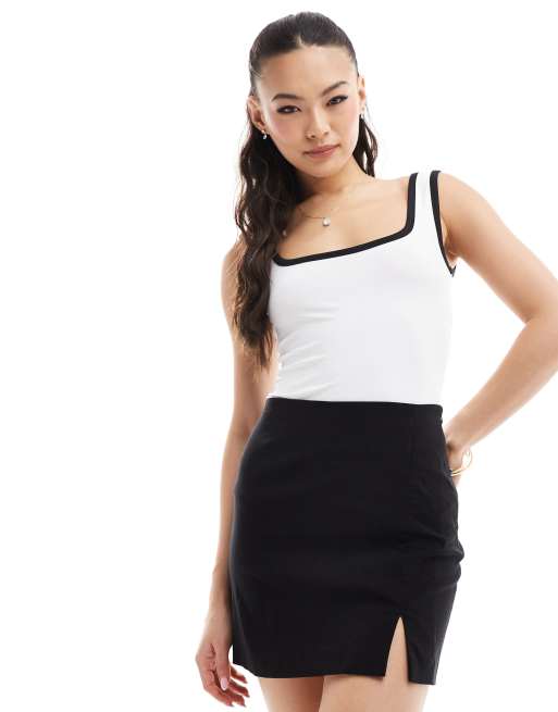 ASOS DESIGN – Podkoszulek w kolorze kości słoniowej z dekoltem karo i kontrastową lamówką