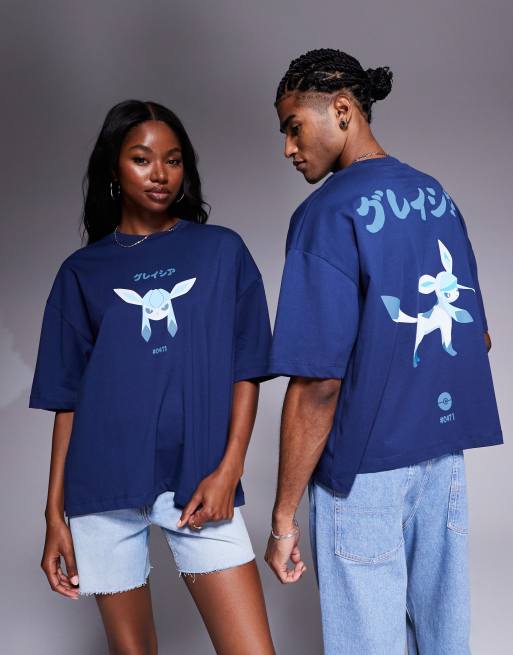 ASOS DESIGN – Pokemon – Niebieski T-shirt unisex o fasonie oversize z nadrukiem z Glaceon