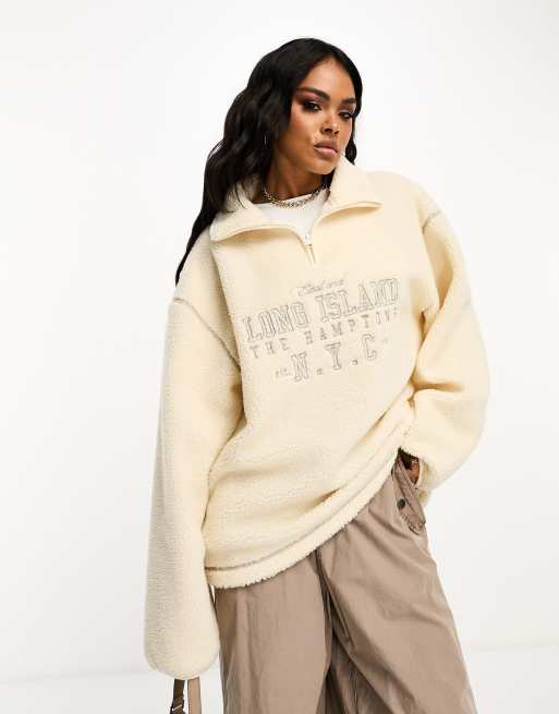 ASOS DESIGN – Polarowa bluza oversize z kożuszka z zamkiem pod szyją i haftem Long Island