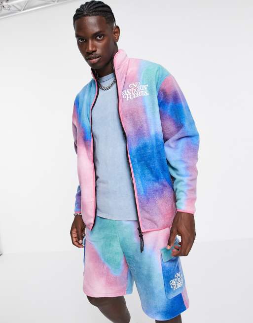 ASOS DESIGN – Polarowa kurtka dresowa oversize z abstrakcyjnym wzorem i haftem – Część zestawu