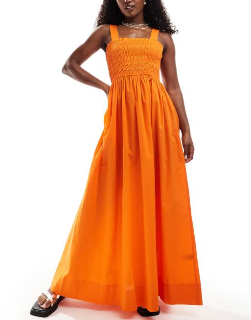 ASOS DESIGN – Pomarańczowa marszczona na biuście sukienka plażowa maxi