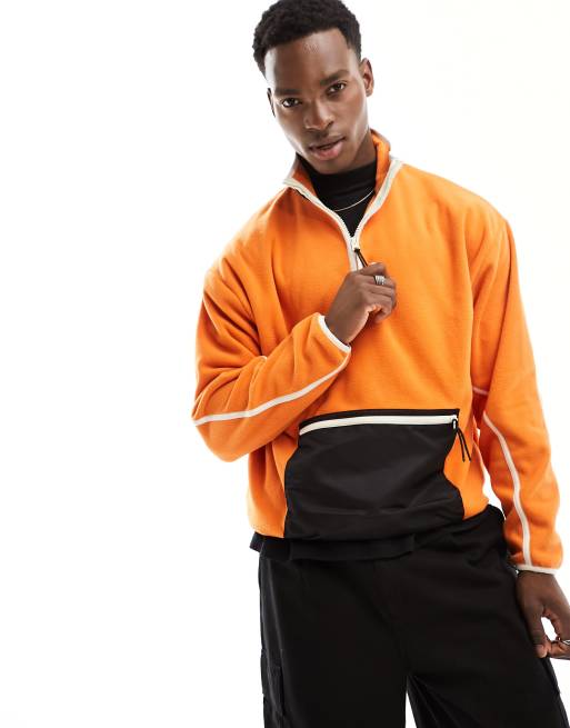 ASOS DESIGN – Pomarańczowa polarowa bluza oversize z suwakiem pod szyją i ozdobnymi szwami