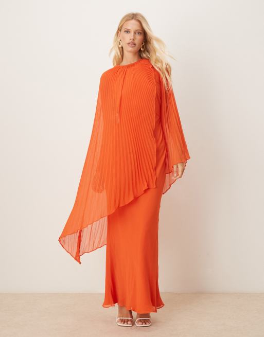 ASOS DESIGN – Pomarańczowa sukienka maxi cięta ze skosu z plisami i obszernymi rękawami