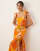 ASOS DESIGN – Pomarańczowa sukienka maxi z falbankowymi rękawkami we wzór w owoce