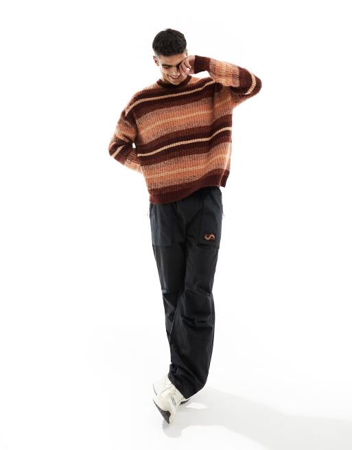 ASOS DESIGN – Pomarańczowo-czerwony szczotkowany sweter oversize ze wzorem w paski ombre