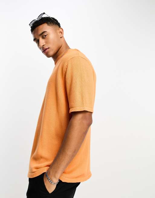 ASOS DESIGN – Pomarańczowy bawełniany T-shirt z dzianiny średniej grubości