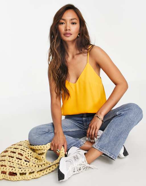 ASOS DESIGN – Pomarańczowy dwuwarstwowy top na ramiączkach z dekoltem w kształcie litery V