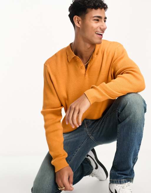 ASOS DESIGN – Pomarańczowy prążkowany sweter oversize z kołnierzykiem polo