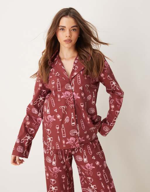 ASOS DESIGN – Popelinowa domowa koszula z kołnierzem w wakacyjny wzór