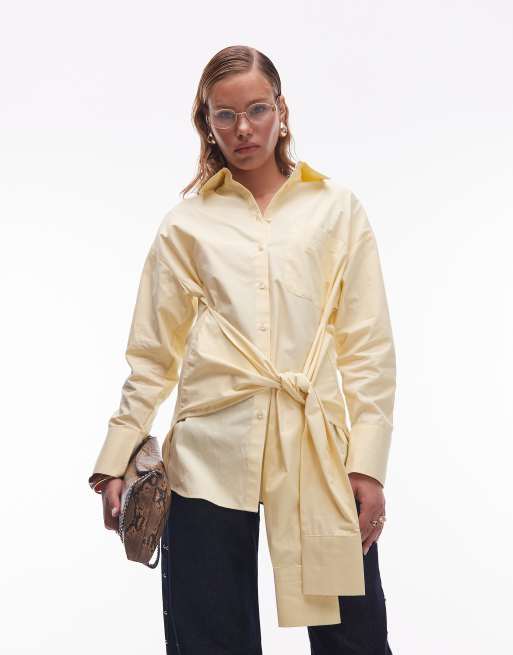 ASOS DESIGN – Popelinowa kopertowa koszula wiązana w talii w kolorze ecru