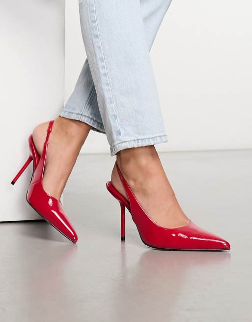 ASOS DESIGN – Porsha – Czerwone buty na wysokim obcasie z paskiem za piętą