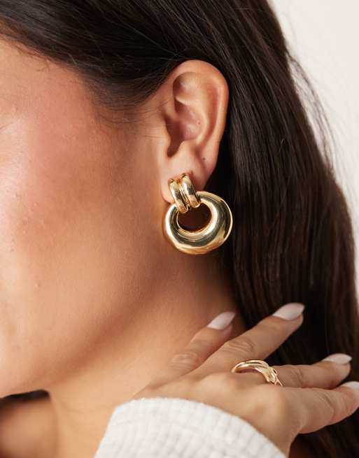ASOS DESIGN – Powlekane 14-karatowym złotem długie kolczyki z kołatką
