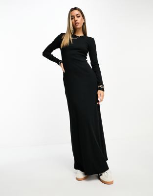 ASOS DESIGN – Prążkowana czarna sukienka kolumnowa maxi z okrągłym dekoltem