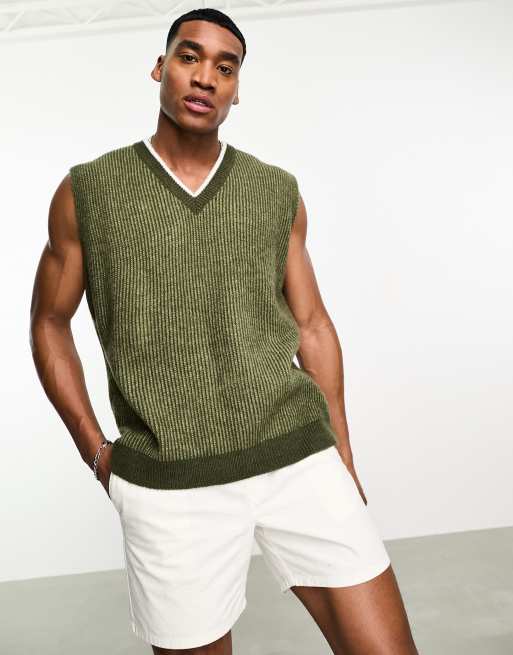 ASOS DESIGN – Prążkowany dzianinowy podkoszulek oversize w zielonym kolorze