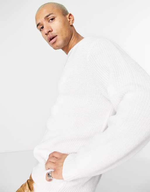 ASOS DESIGN – Prążkowany dzianinowy sweter oversize w białym kolorze