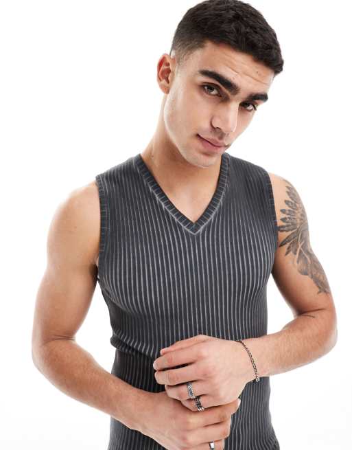 ASOS DESIGN – Prążkowany grafitowy podkoszulek o kroju podkreślającym sylwetkę w spranym grafitowym kolorze