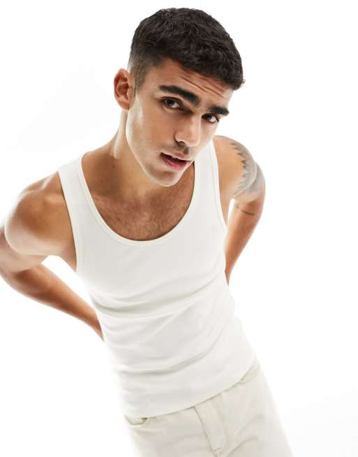 ASOS DESIGN – Prążkowany podkoszulek o kroju podkreślającym sylwetkę w kolorze ecru