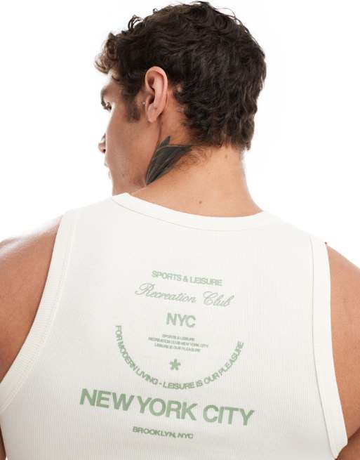 ASOS DESIGN – Prążkowany podkoszulek w kolorze złamanej bieli z nadrukiem NYC na plecach