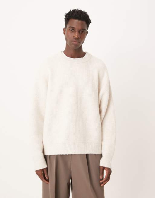 ASOS DESIGN – Prążkowany sweter o pudełkowym fasonie super oversize i splocie patentowym w naturalnym kolorze