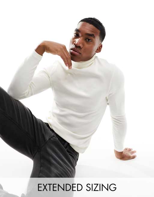 ASOS DESIGN – Prążkowany T-shirt z długimi rękawami i golfem w kolorze ecru