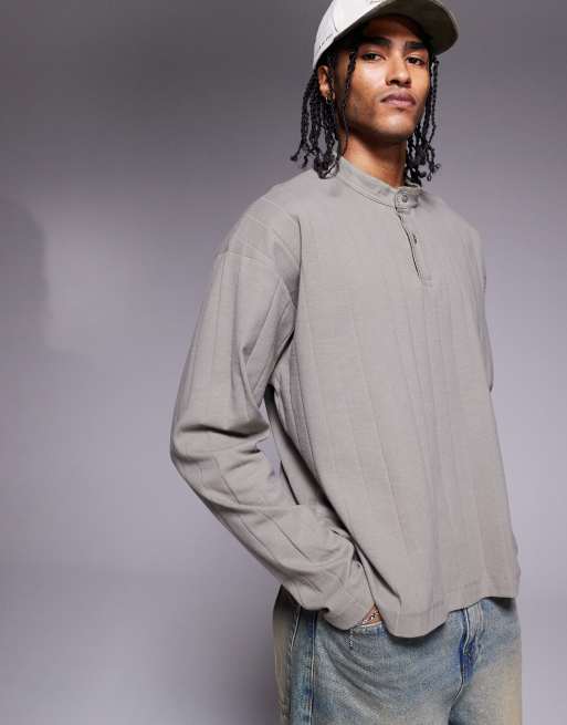 ASOS DESIGN – Prążkowany teksturowany T-shirt oversize o pudełkowym kroju z długim rękawem w kolorze khaki