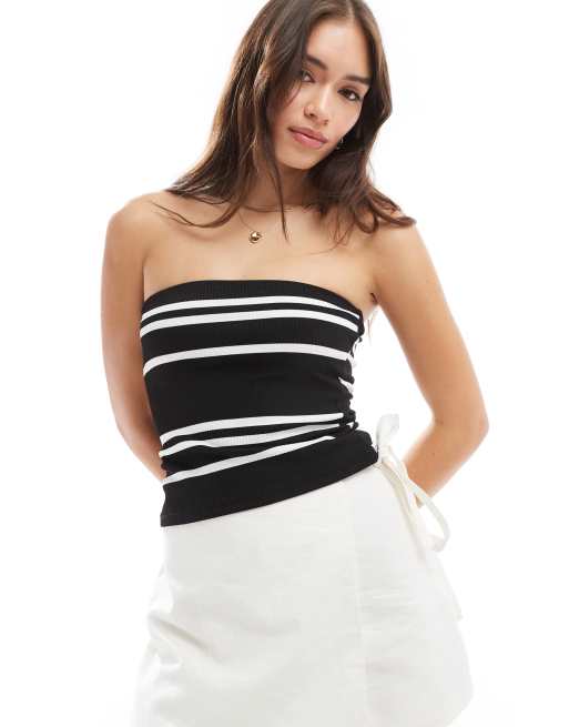 ASOS DESIGN – Prążkowany top bandeau w czarno-białe paski
