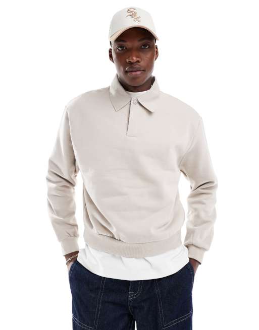 ASOS DESIGN Premium – Beżowa gruba bluza extreme oversize z kołnierzykiem rugby o gramaturze 400 g/m²